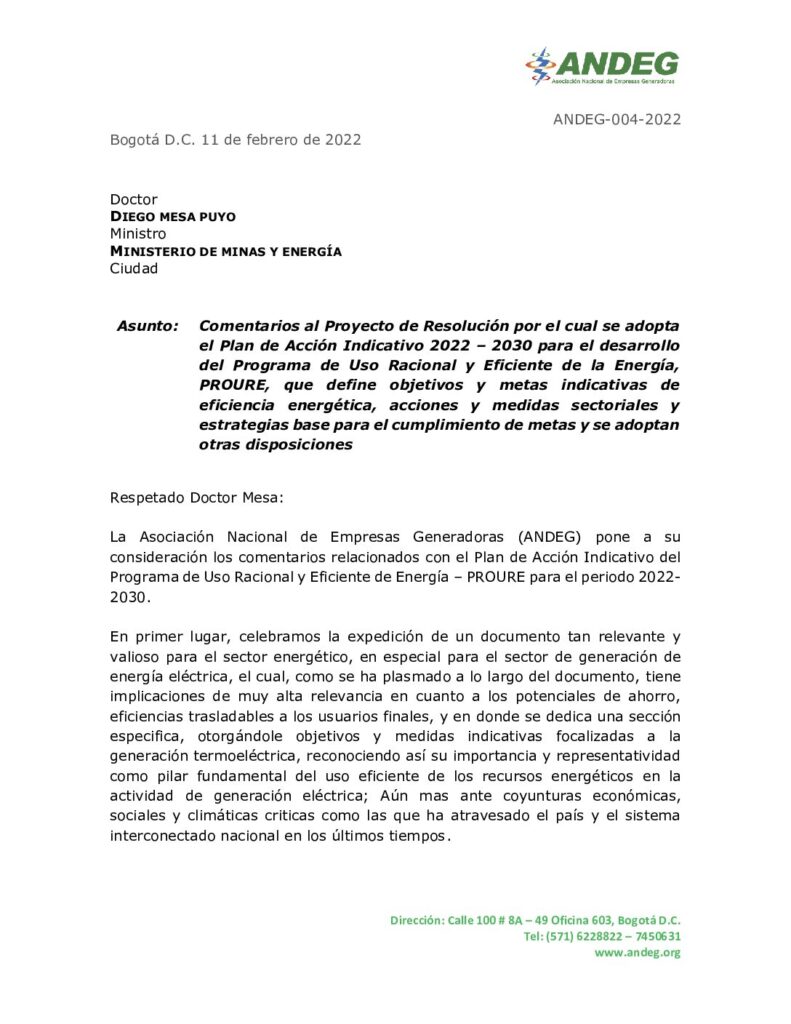 La Asociación Nacional de Empresas Generadoras – Andeg, hace un llamado a tomar acciones frente a la evidente necesidad de expandir el Sistema Nacional de Transporte ante las situaciones presentadas recientemente en la Cuenca de los Llanos Orientales en el área de influencia de los campos Cusiana y Cupiagua, y en el Gasoducto Cusiana- El […]