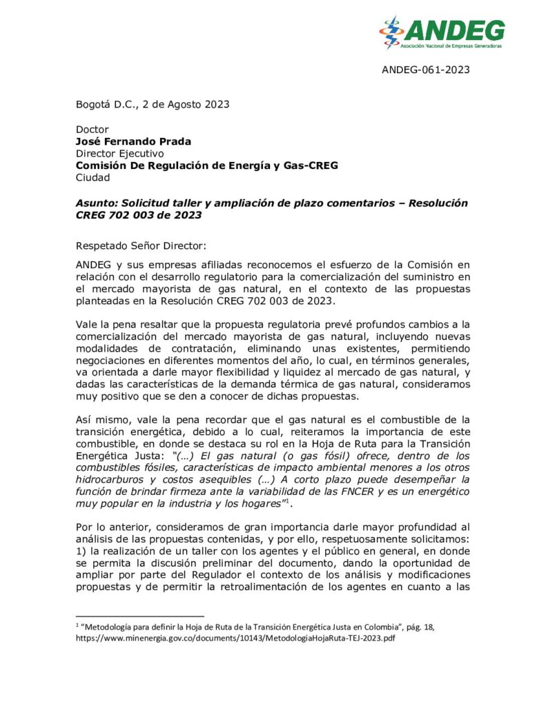 Durante los últimos 10 años, la Asociación Nacional de Empresas Generadoras – Andeg, ha impulsado y visualizado la importancia de la producción de energía a partir del gas natural, el gas natural licuado- GNL, el carbón y los combustibles líquidos, insumos que han permitido asegurar la energía firme con que cuenta el país para mitigar […]