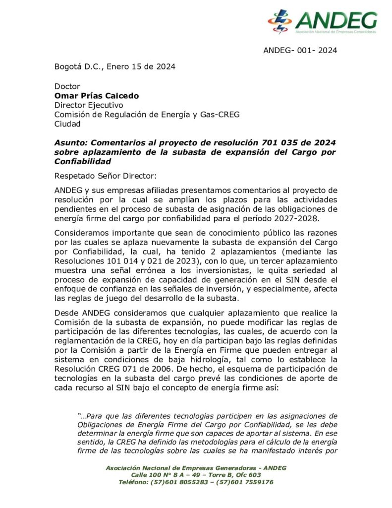 Andeg espera que en 2020 generación térmica este por el orden de un 25%