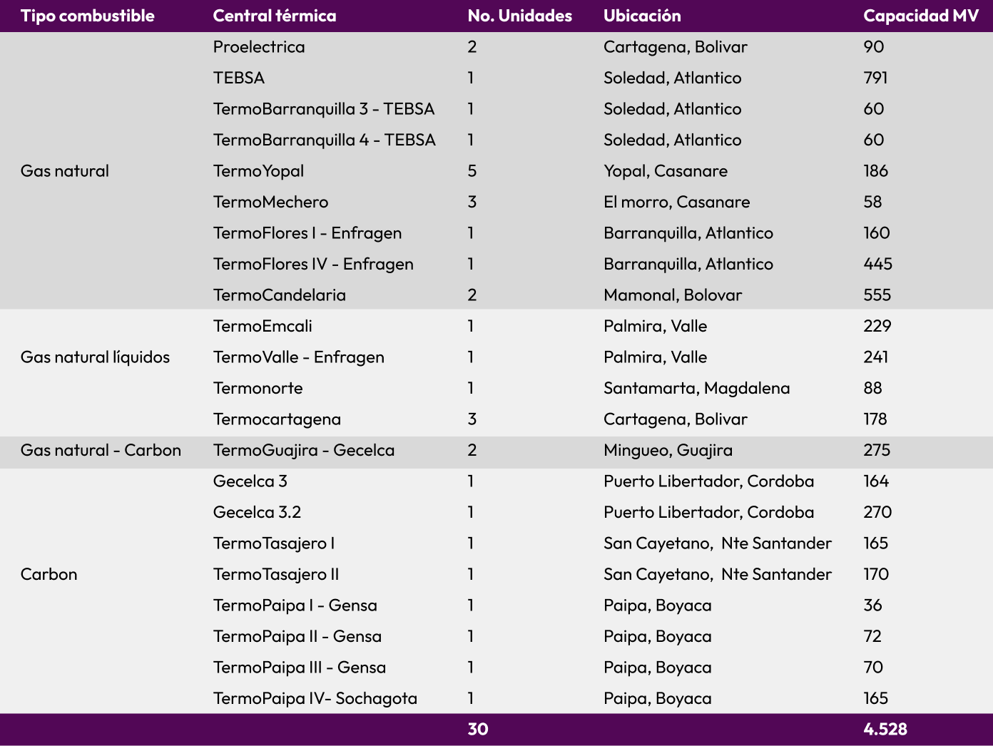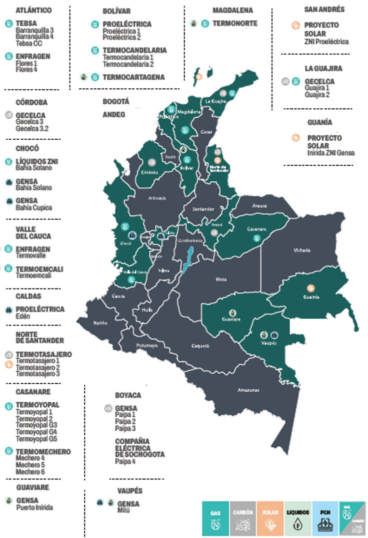 Como a continuación se ilustra, las centrales térmicas asociadas a ANDEG se ubican en su mayor parte en la zona Centro y Caribe del país.